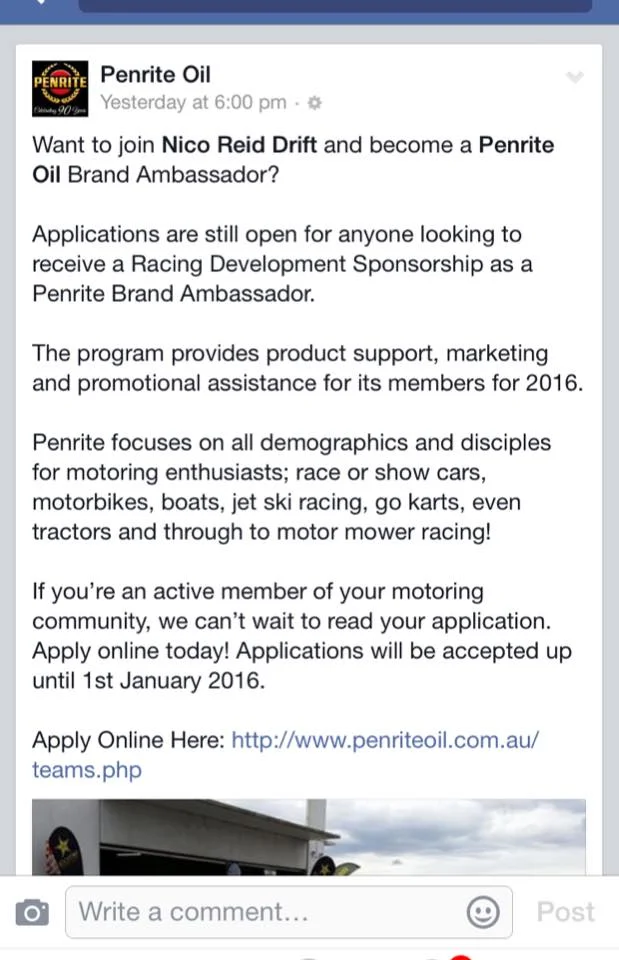 Penrite Oil are offering an exciting opportunity for developing racing drivers at the moment.